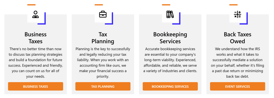 - We work with you all year long--not just at tax time to develop tax planning strategies that lower your tax bill.